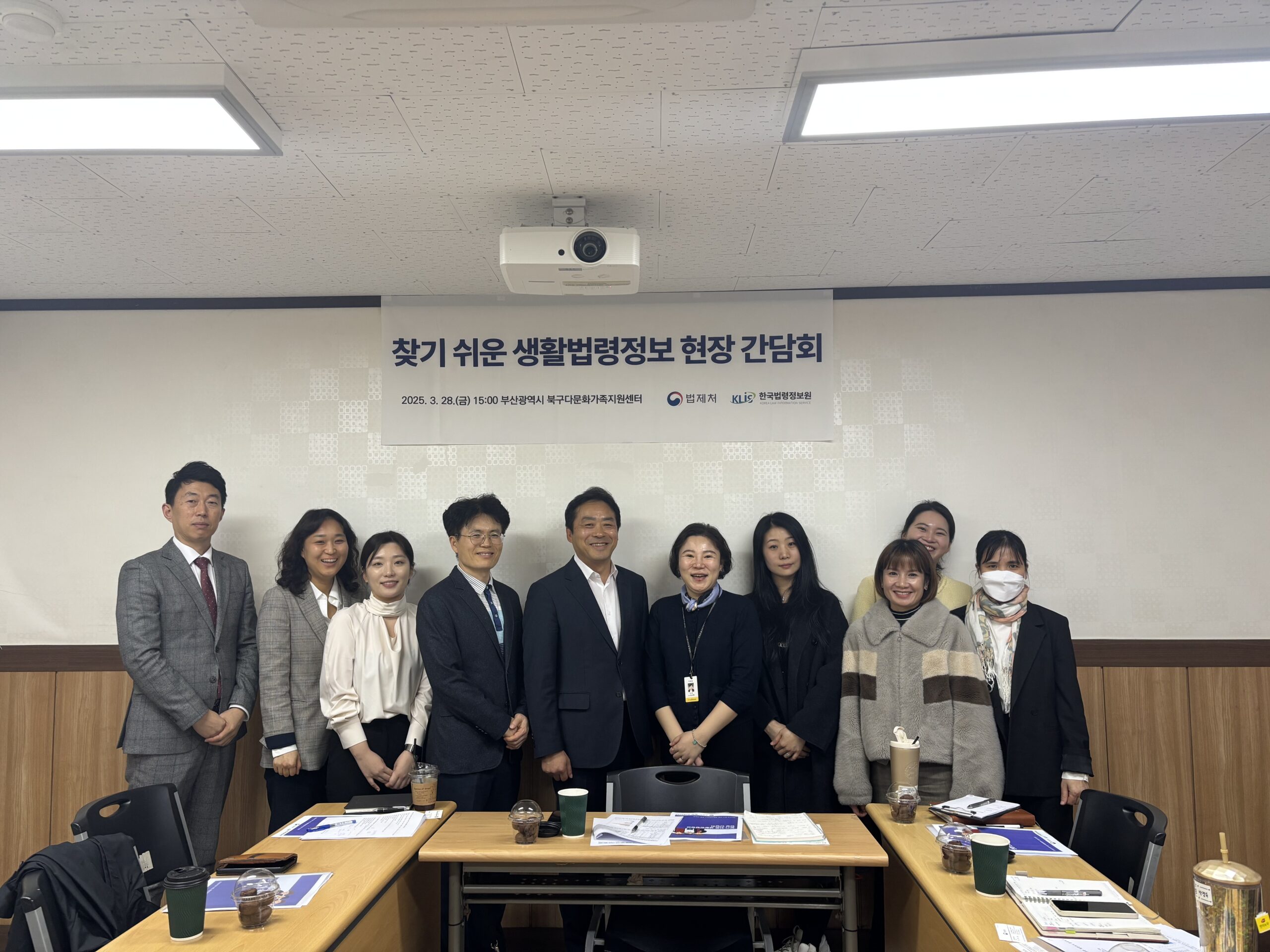 법제처(처장 이완규)는 3월 28일(금), 다문화가족 구성원을 대상으로 생활법령교육*을 실시하고 있는 부산 북구 다문화가족지원센터(센터장 이경희)를 방문해 외국어 생활법령정보의 발전 방안을 모색하기 위한 간담회를 개최했다.