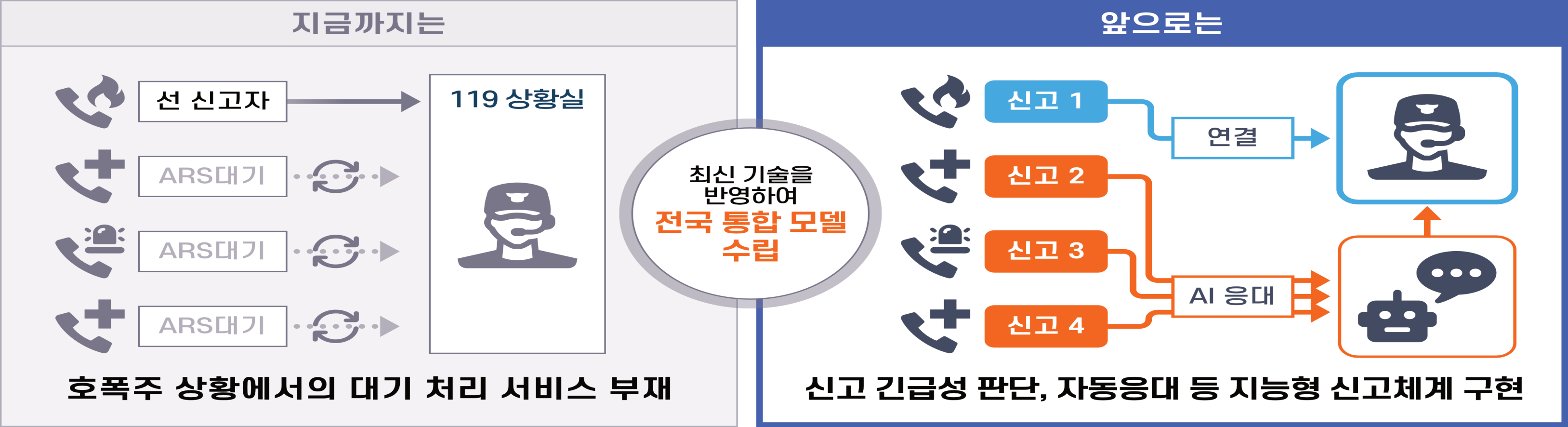 이러한 구조적 개편은 119신고에 대한 국민의 접근성과 편의성을 높이고, 재난 대응 시간 단축, 사고 유형에 따른 맞춤형 조치로 이어져 국민의 일상에 직간접적인 변화를 가져오게 될 것으로 기대된다.